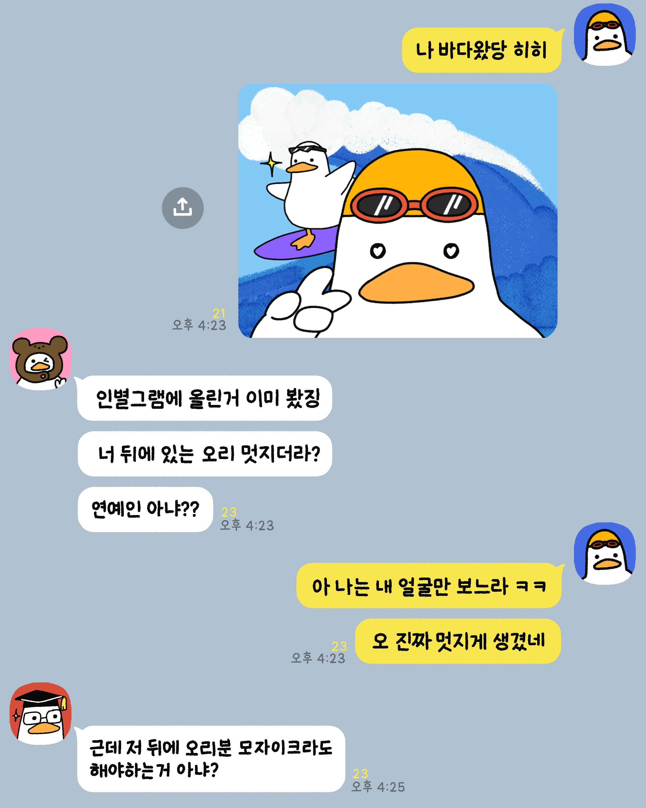 무더운 여름, 바다에서 인생 셀카를 건진 오리